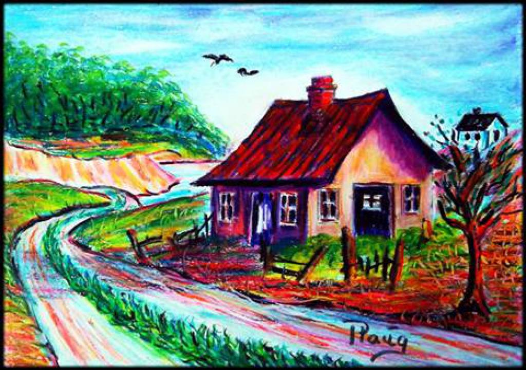 Men her hos den autodidakte kunstner P. Haug får kræfterne frit spil. Beskueren kan glædes og skræmmes over udtryksformen, der dog vækker til eftertanke - fordi der i hans malerier er flere dimensioner. Som havet kan fascinere i såvel storm og havblik, kan sne falde blidt eller lammende i storm. Det er lige i dette spændingsfelt P. Haugs malerier skabes. Det er her ideen eller inspirationen kommer fra - hans eget indre blik .