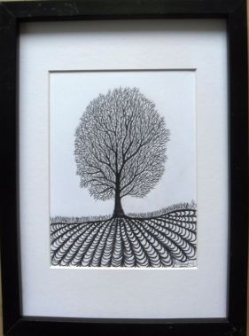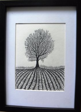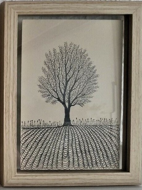 3-5: Sort fineliners på naturpapir i ramme med gennemsigtig baggrund (2 lag glas) Pris 250,00 stk