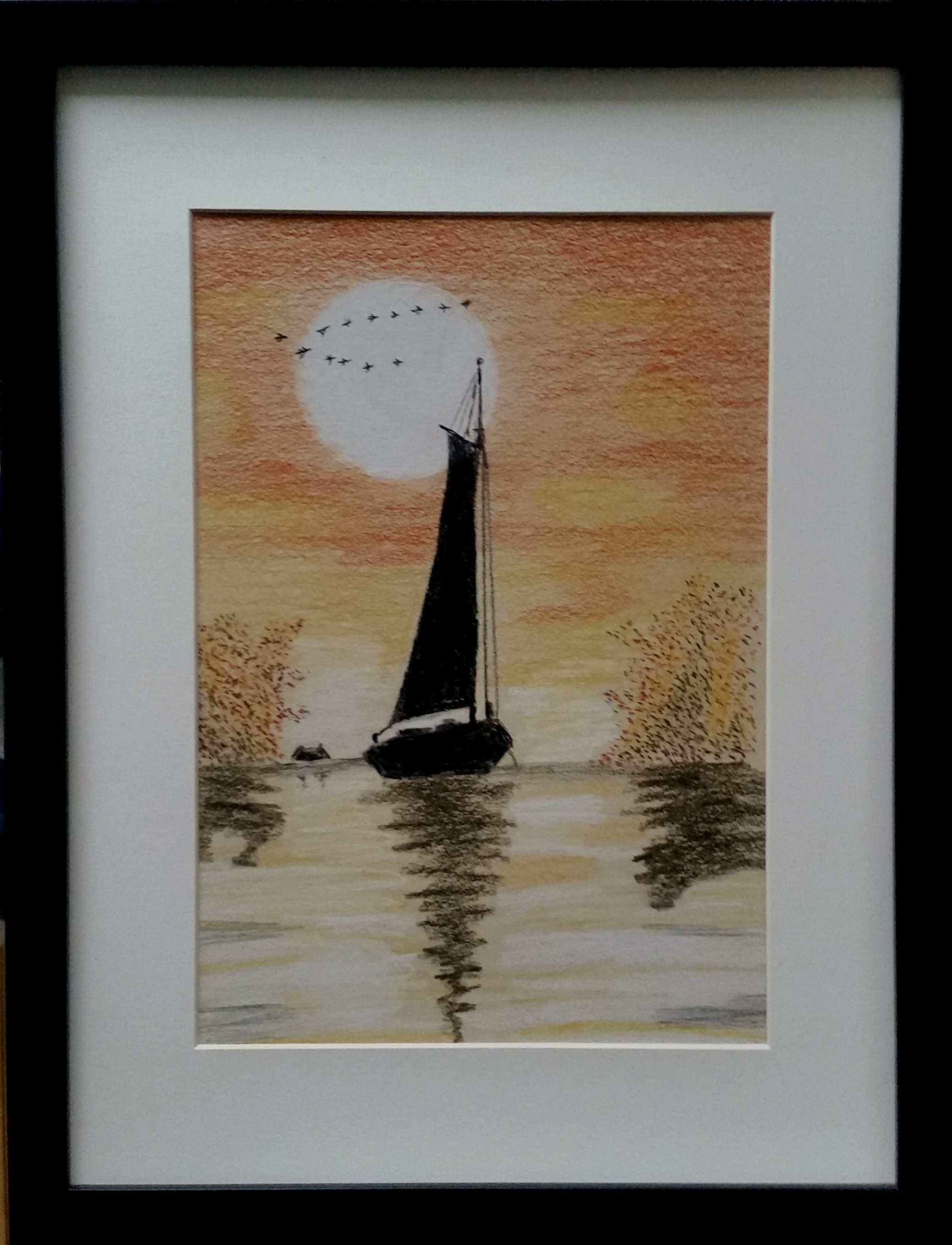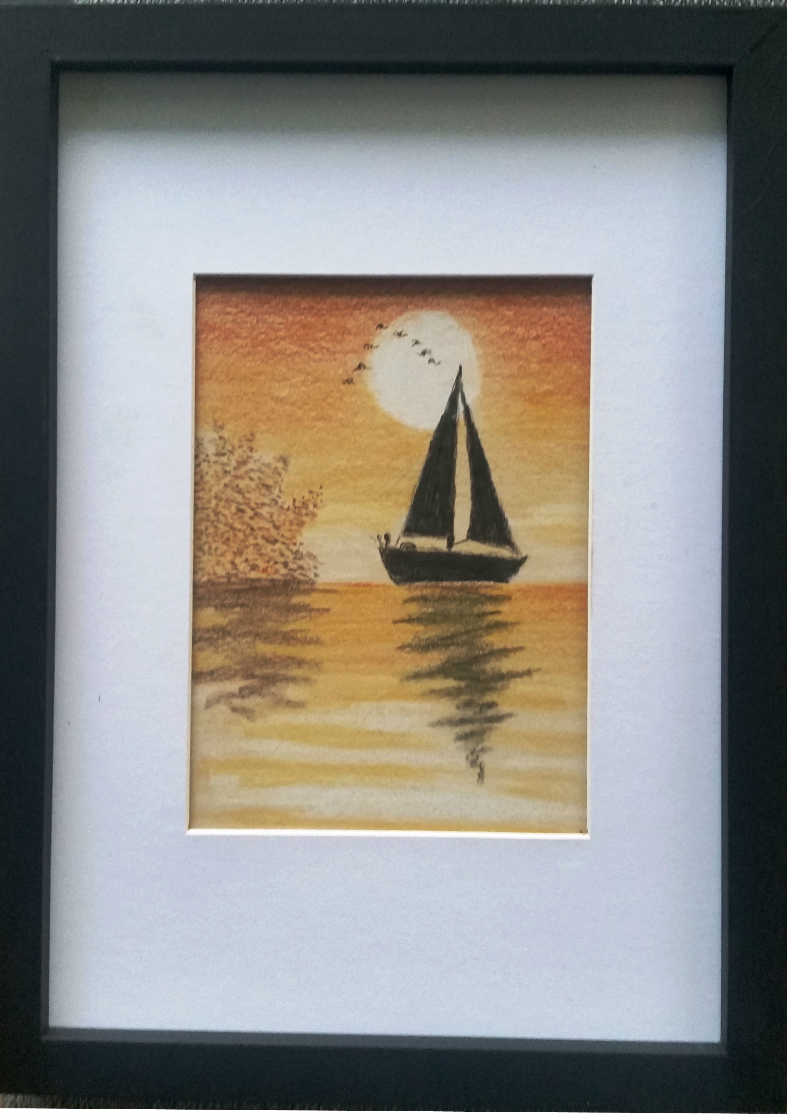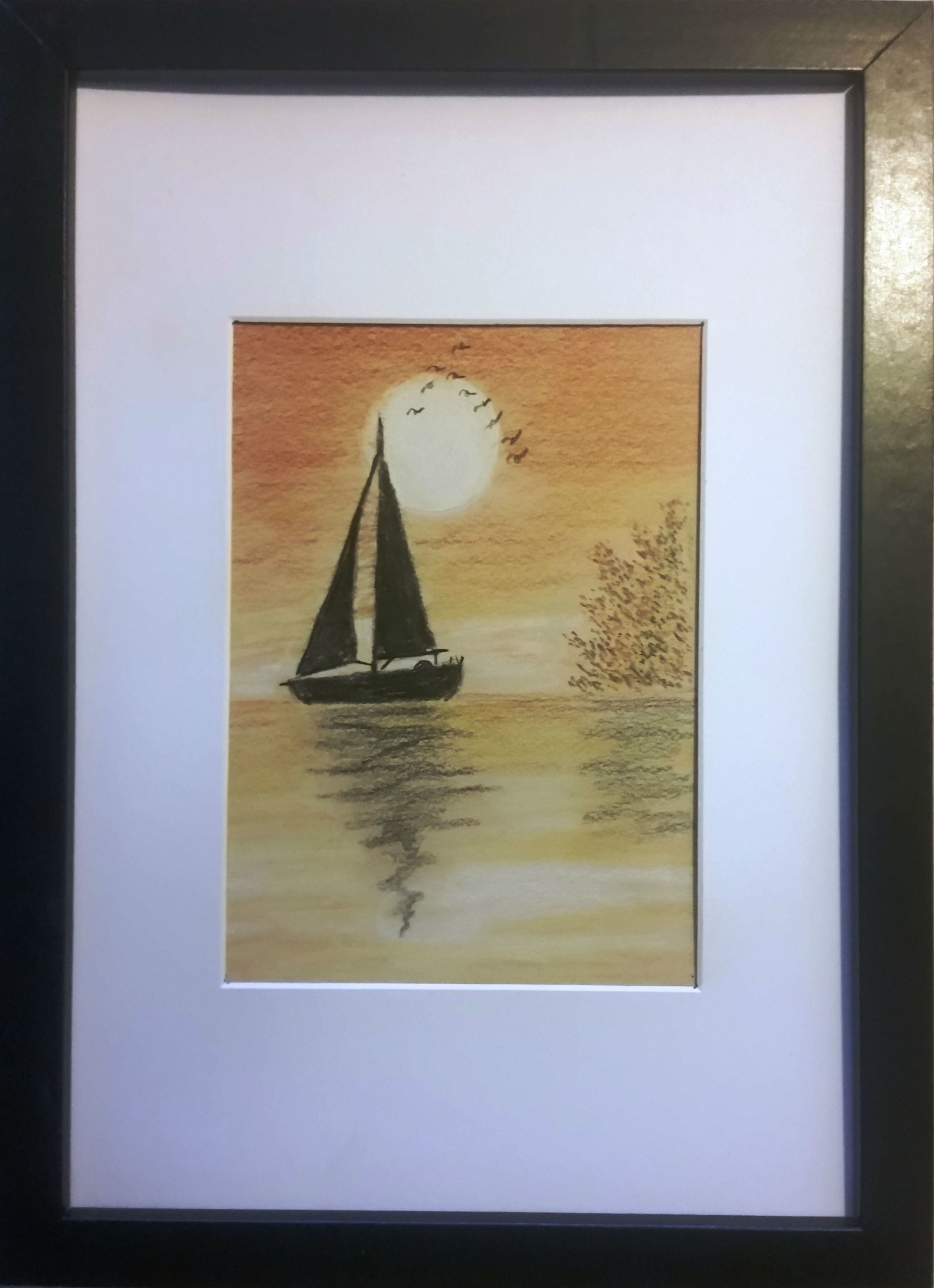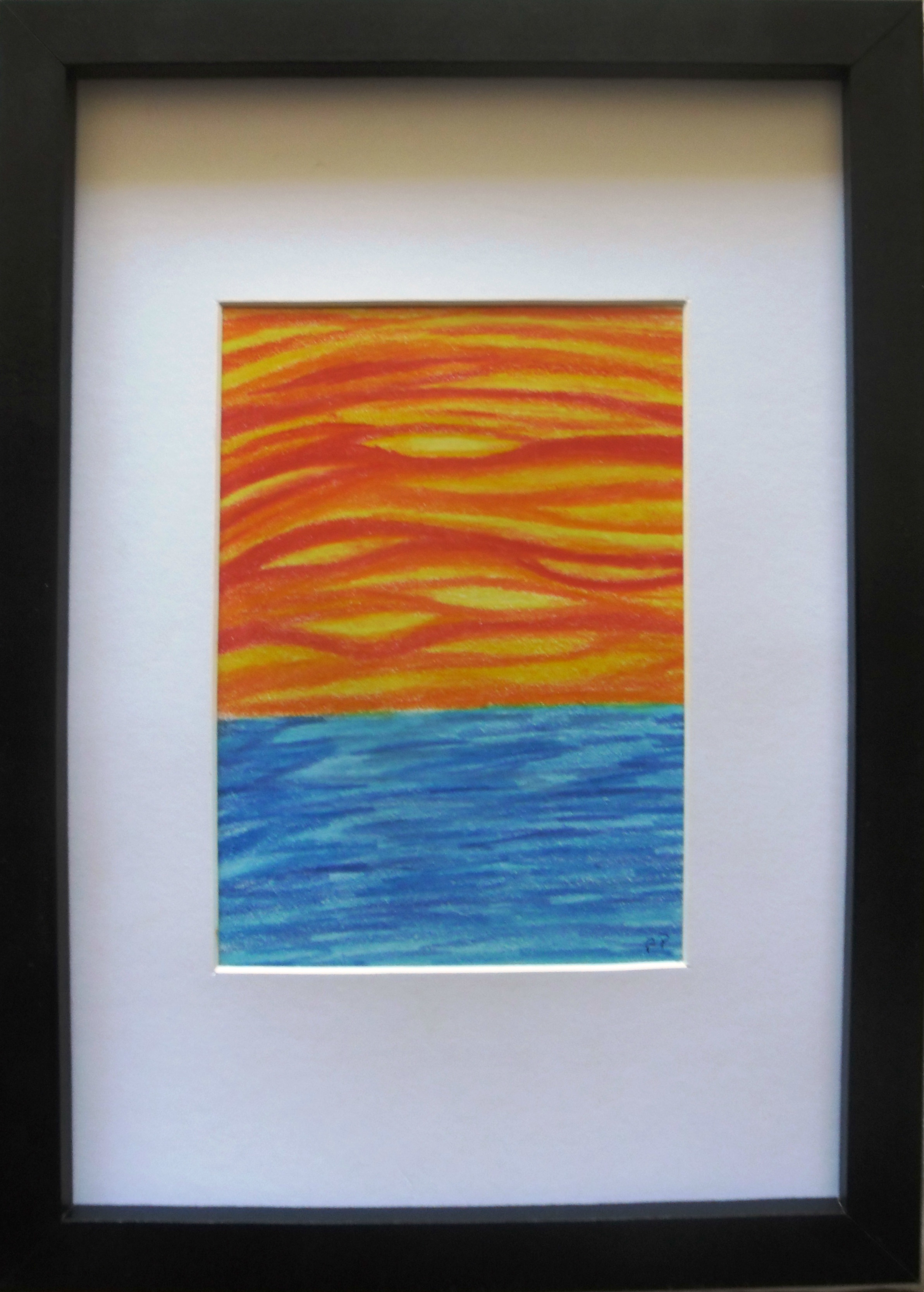 Farveblyant på papir i boxramme med passepartout.pris kr. 250,00.