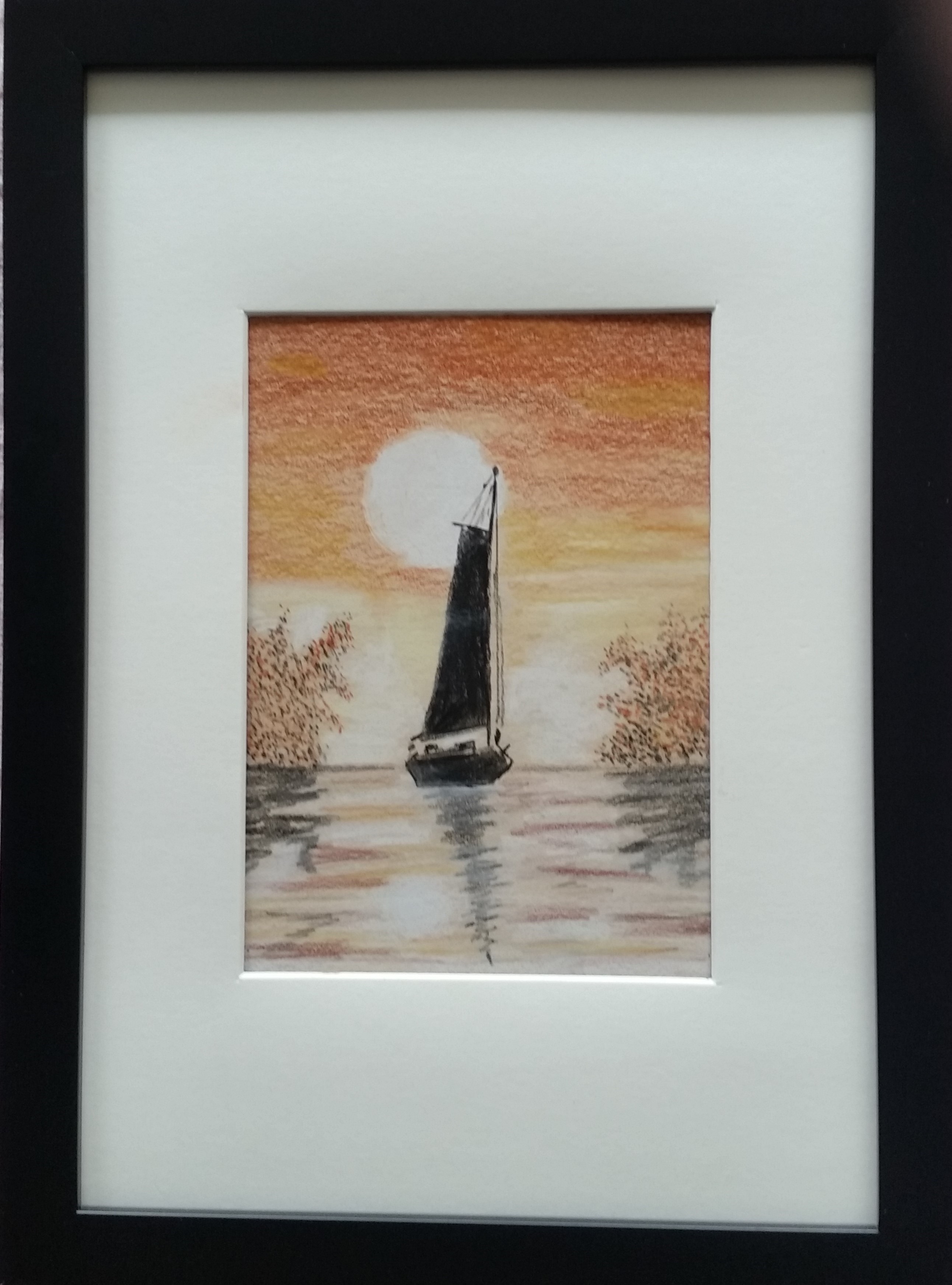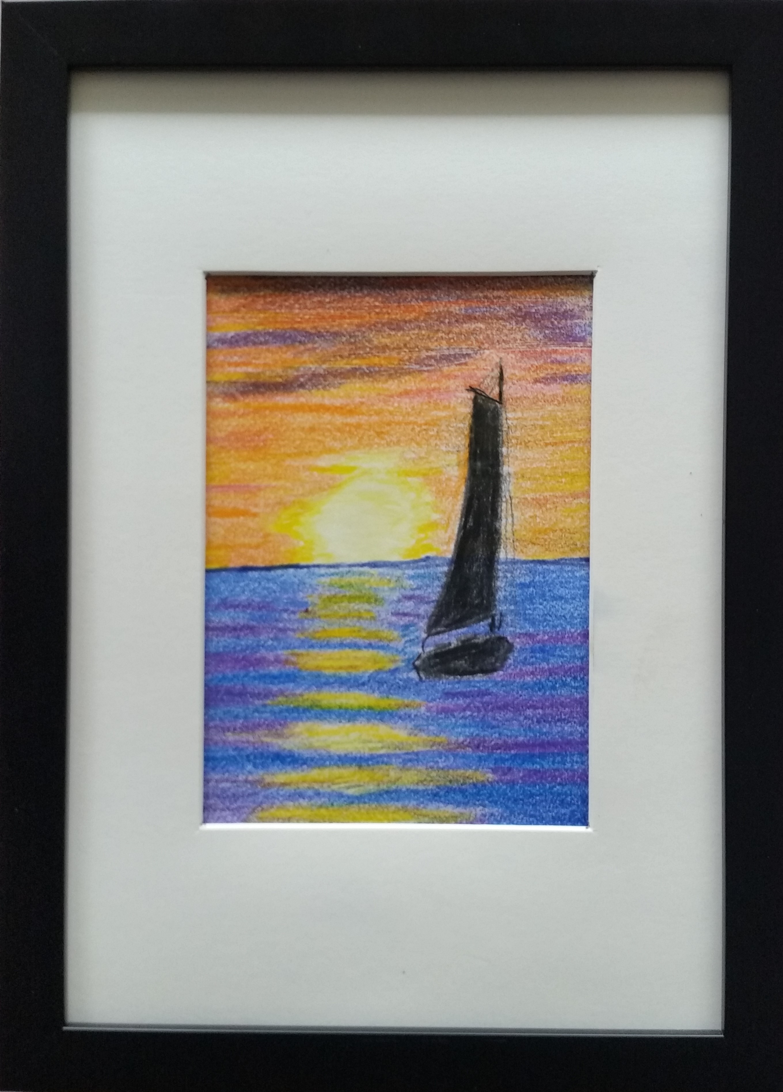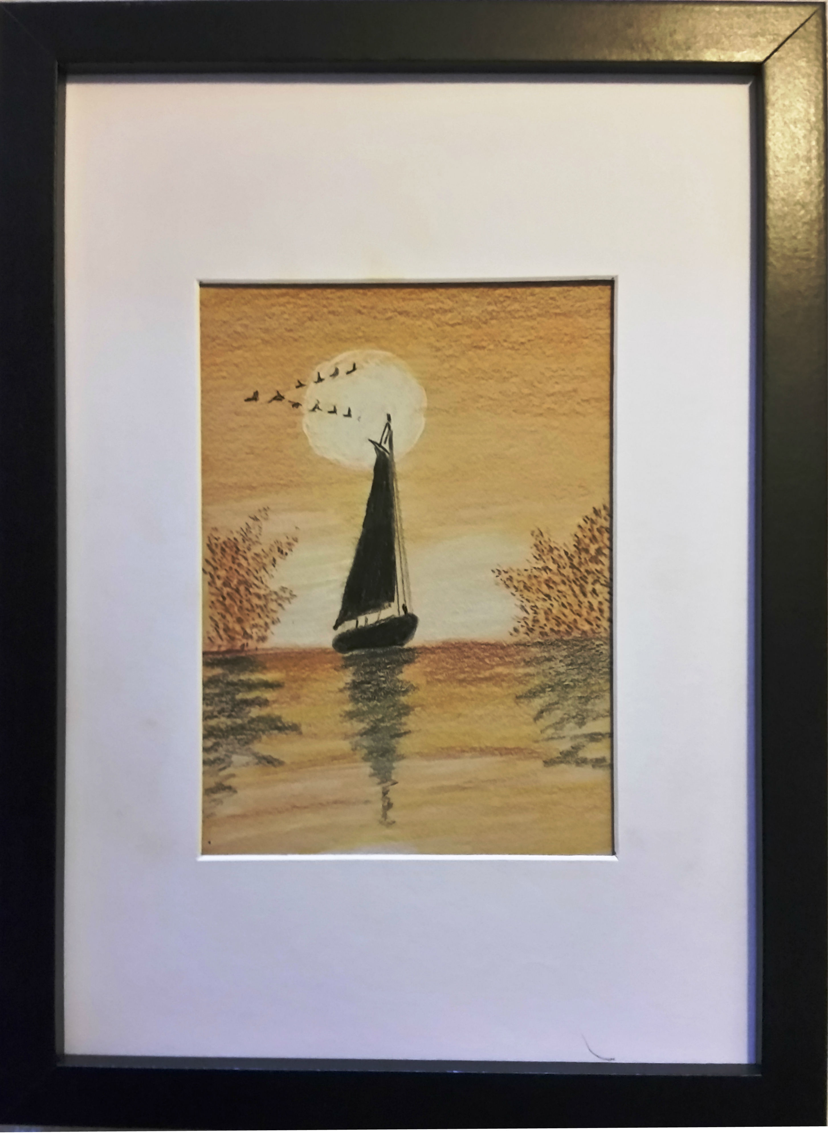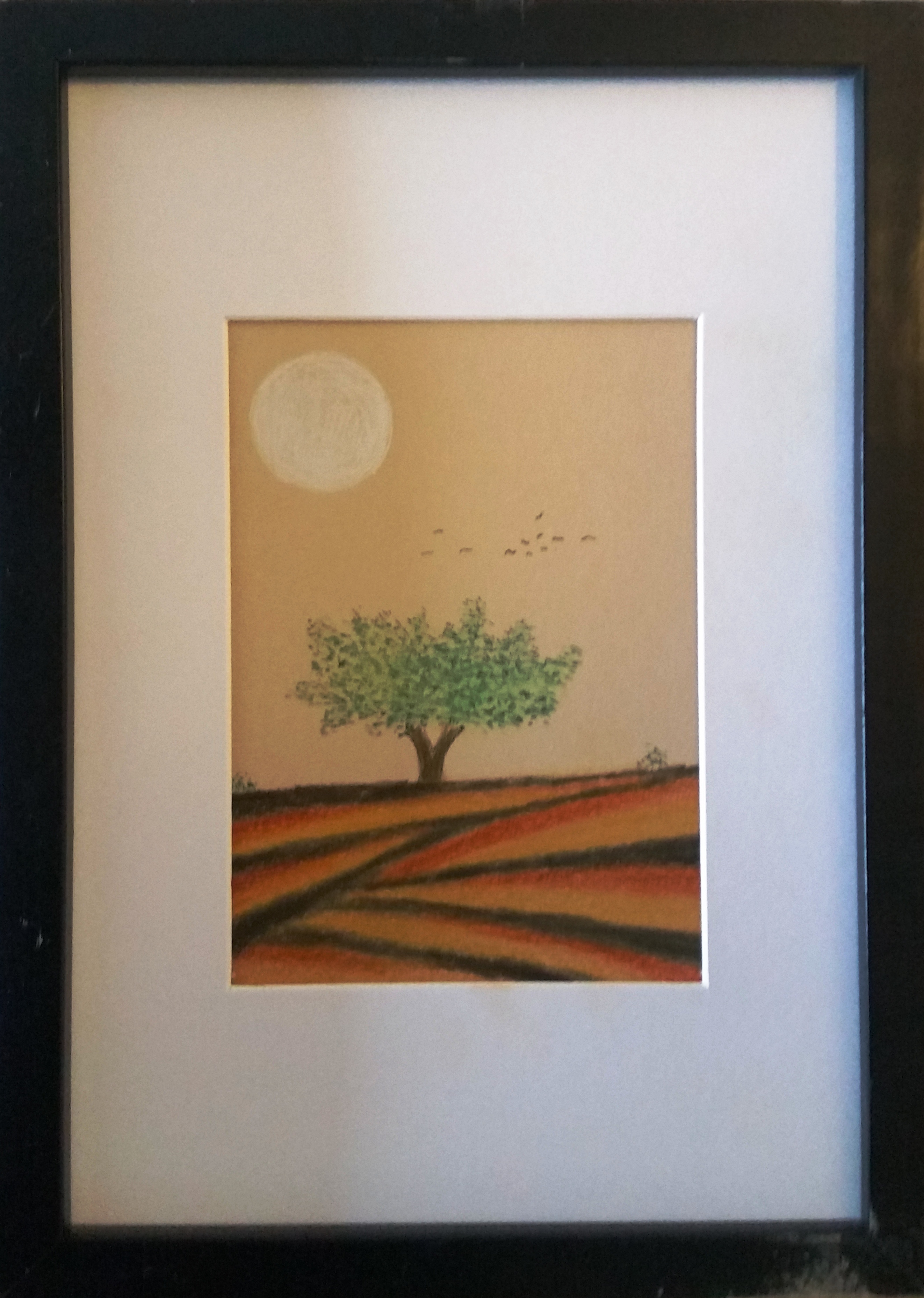 Farveblyant på papir i boxramme med passepartout.pris kr. 250,00.