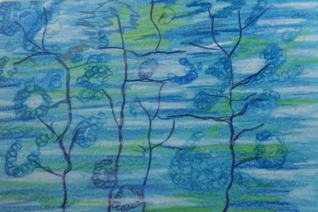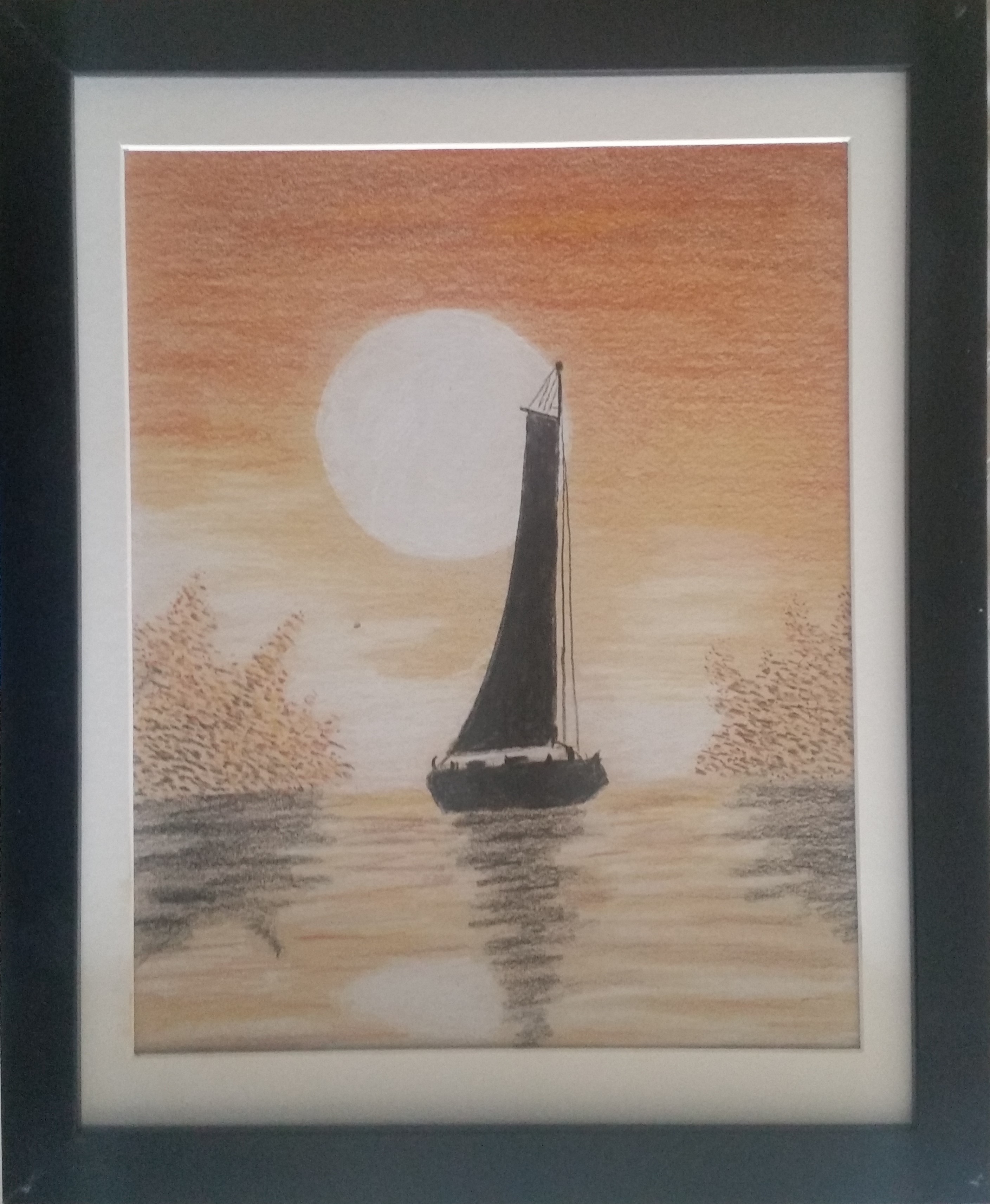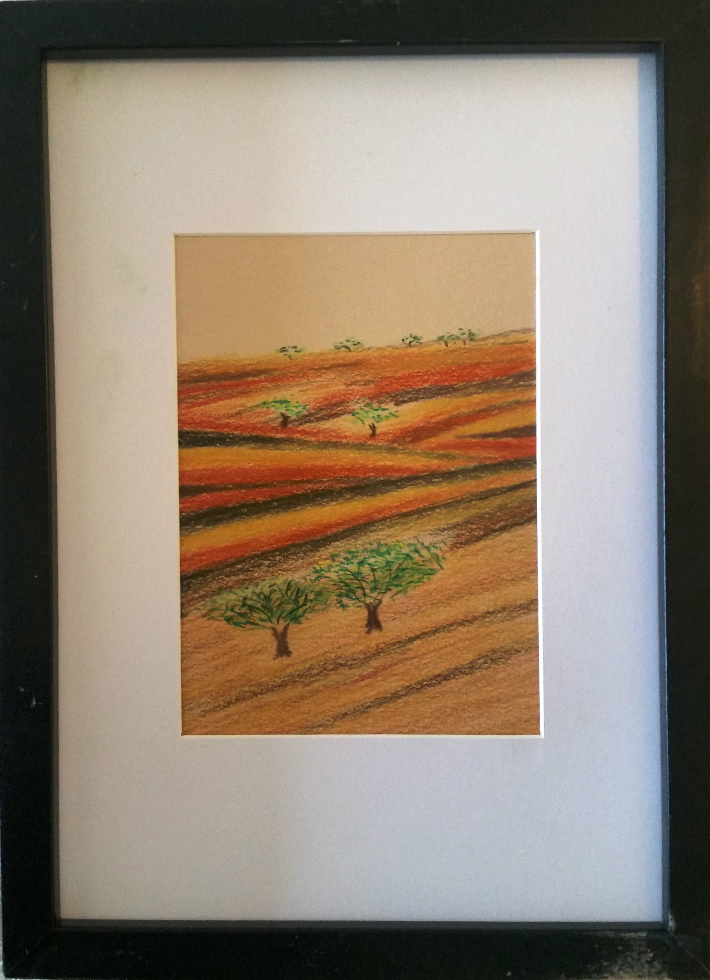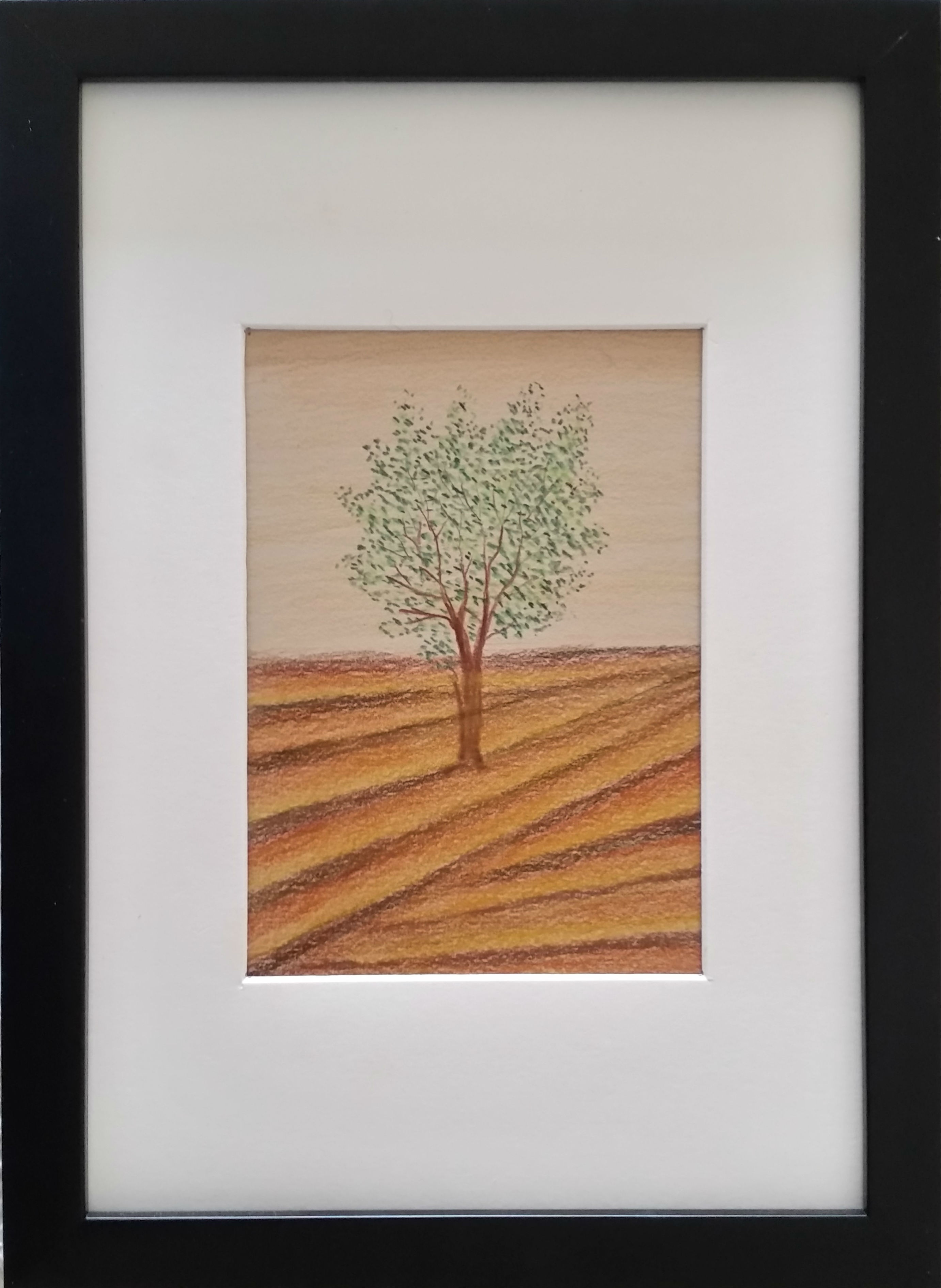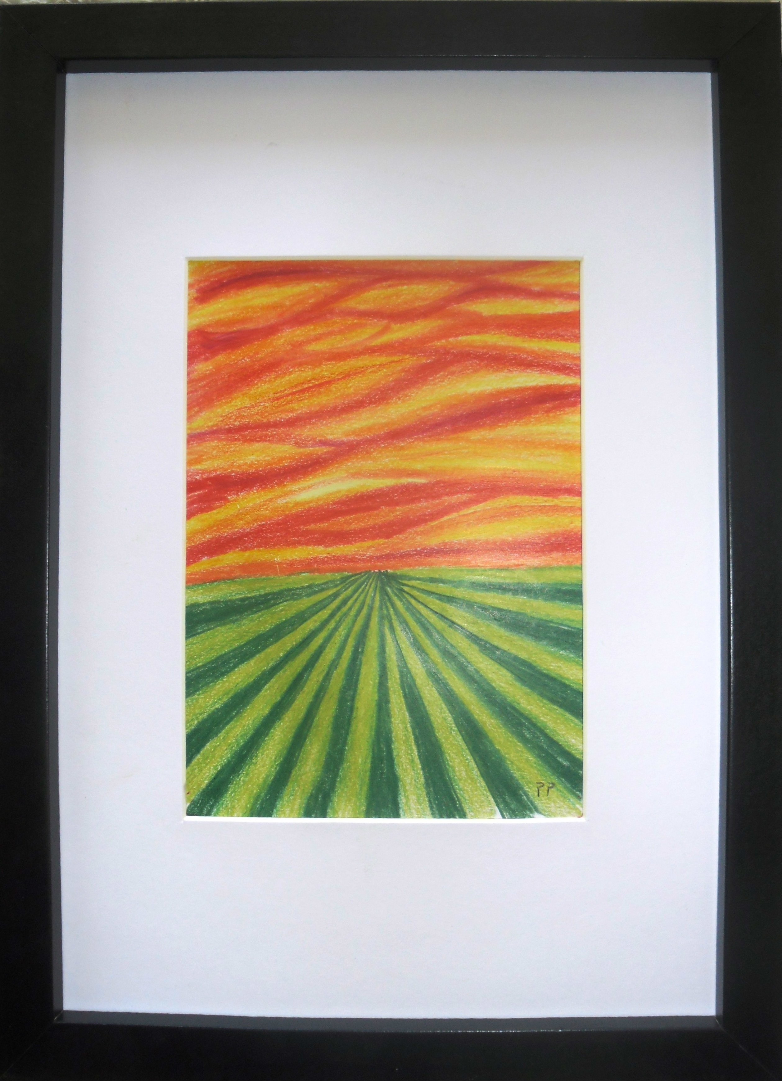 Farveblyant på papir i boxramme med passepartout.pris kr. 250,00.