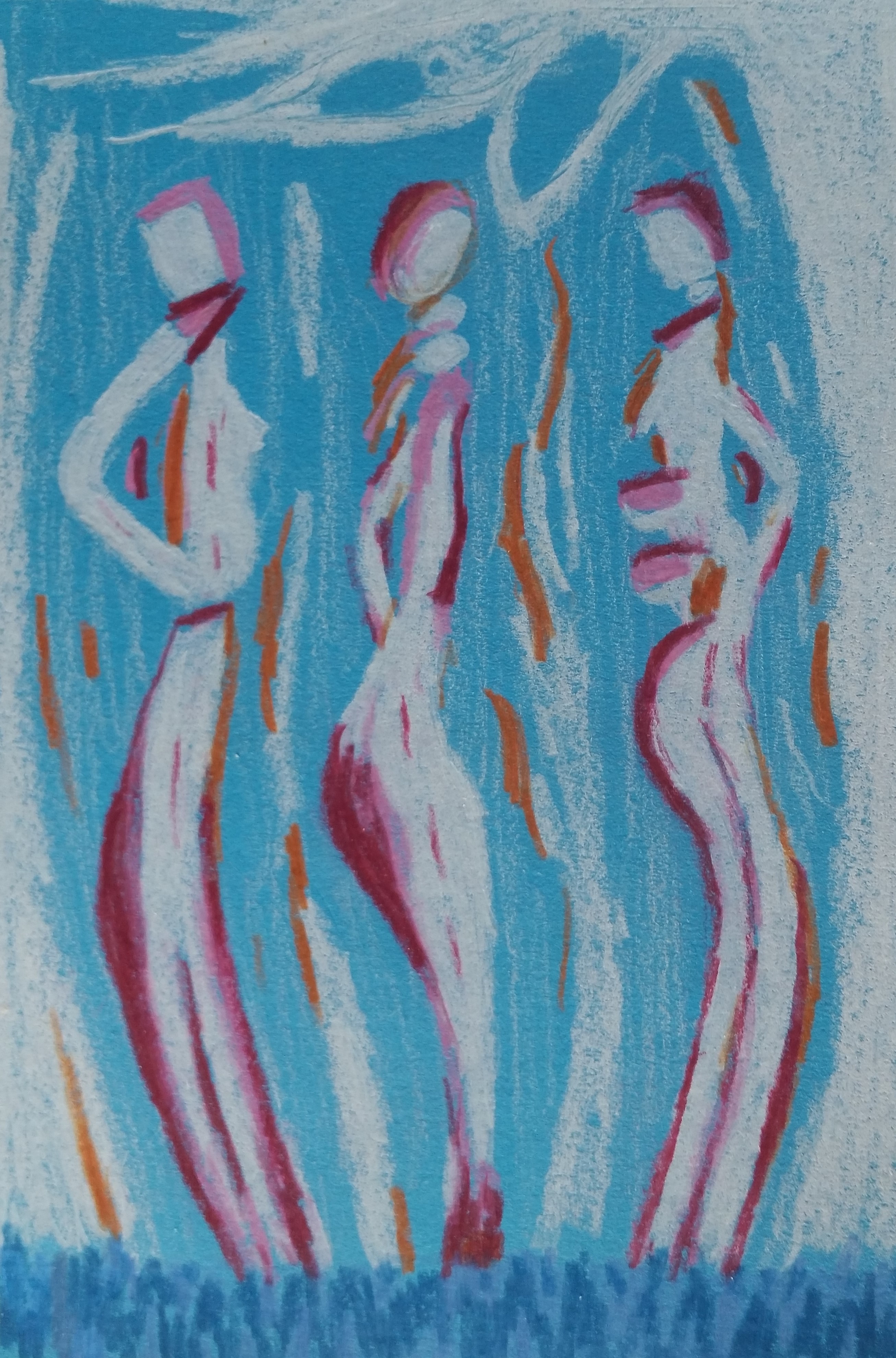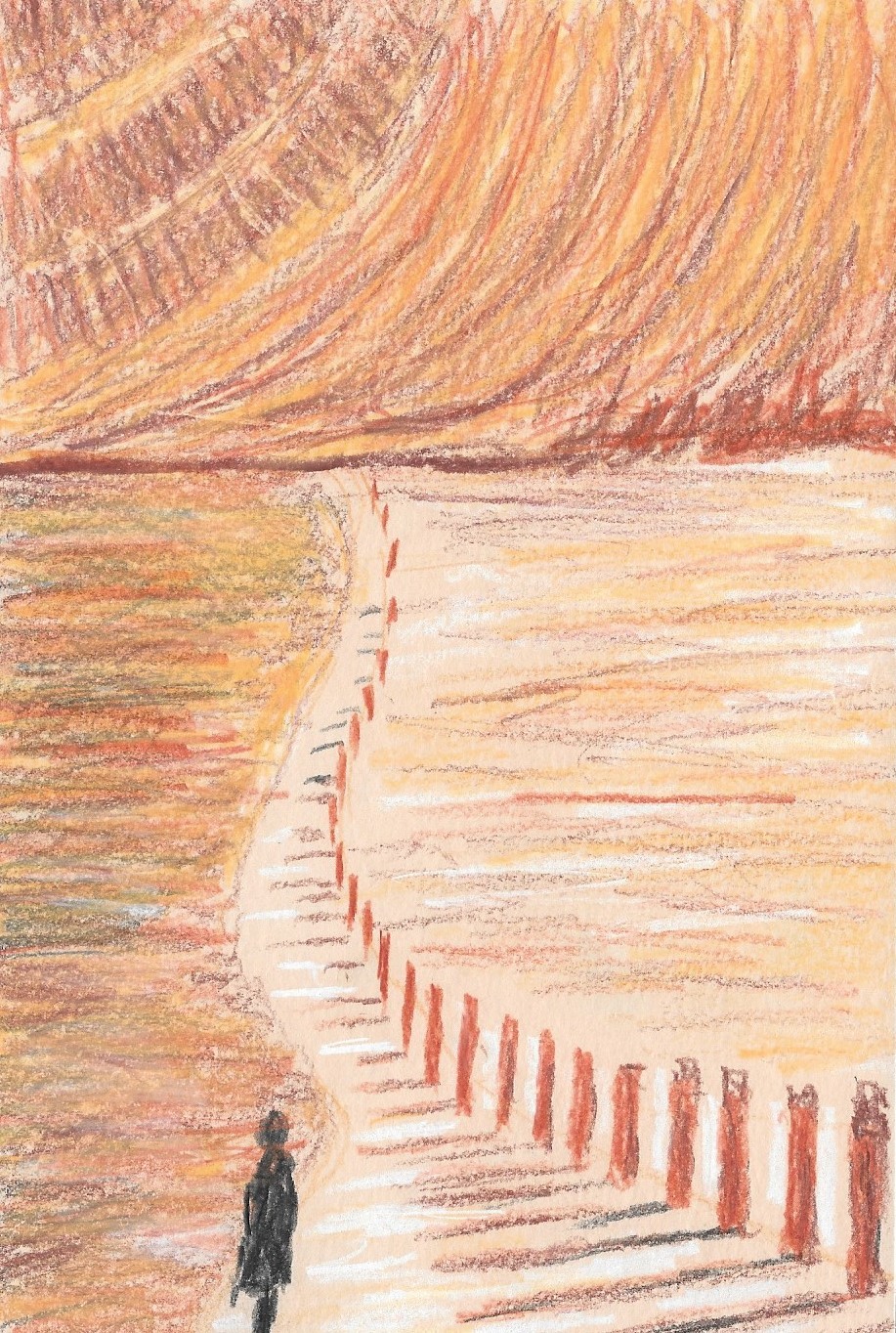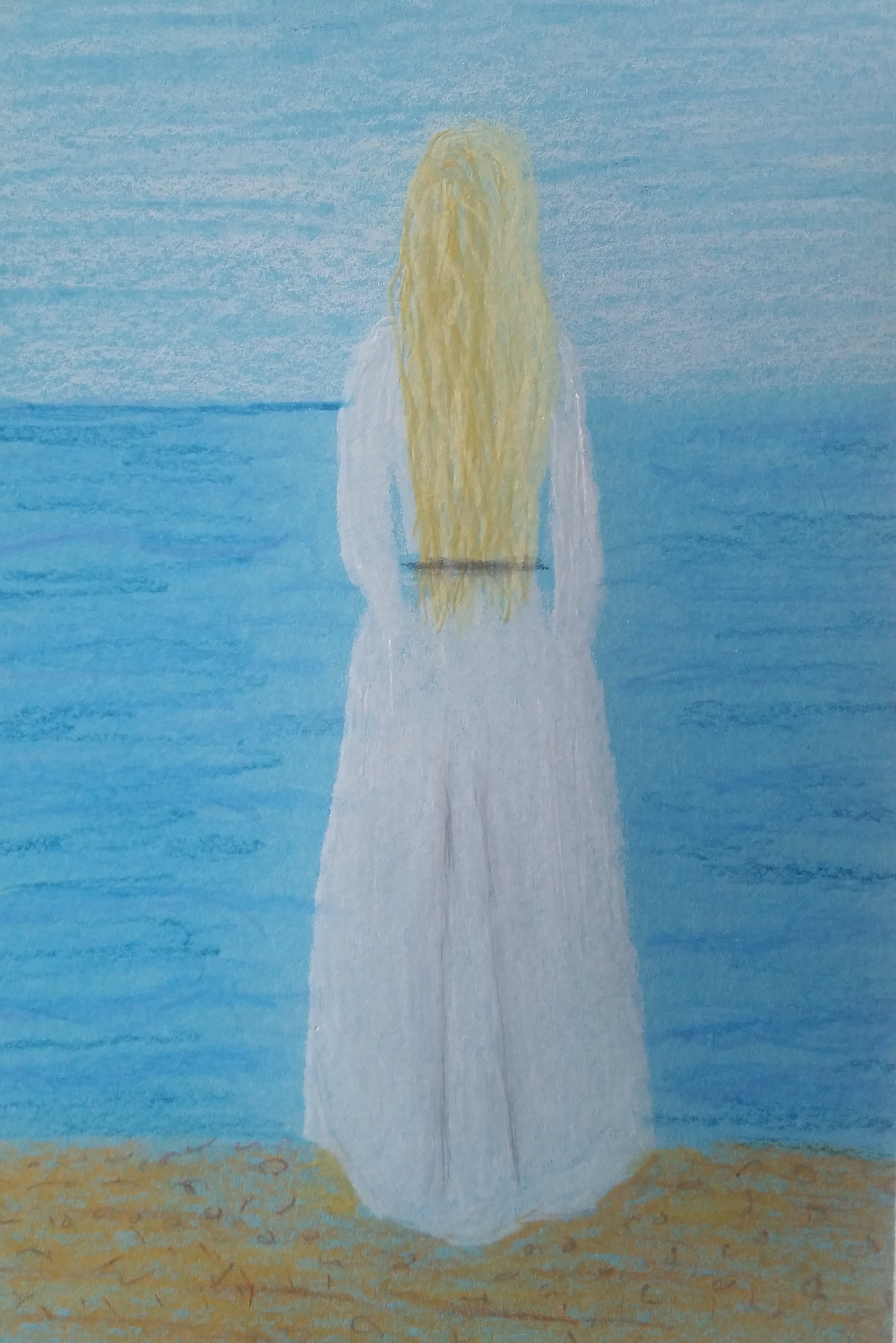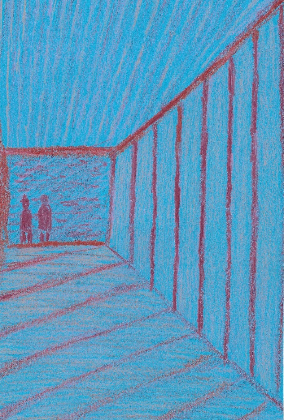 Hvid farveblyant på gråt papir. 50 x 70 cm. (tegning 40 x 50)