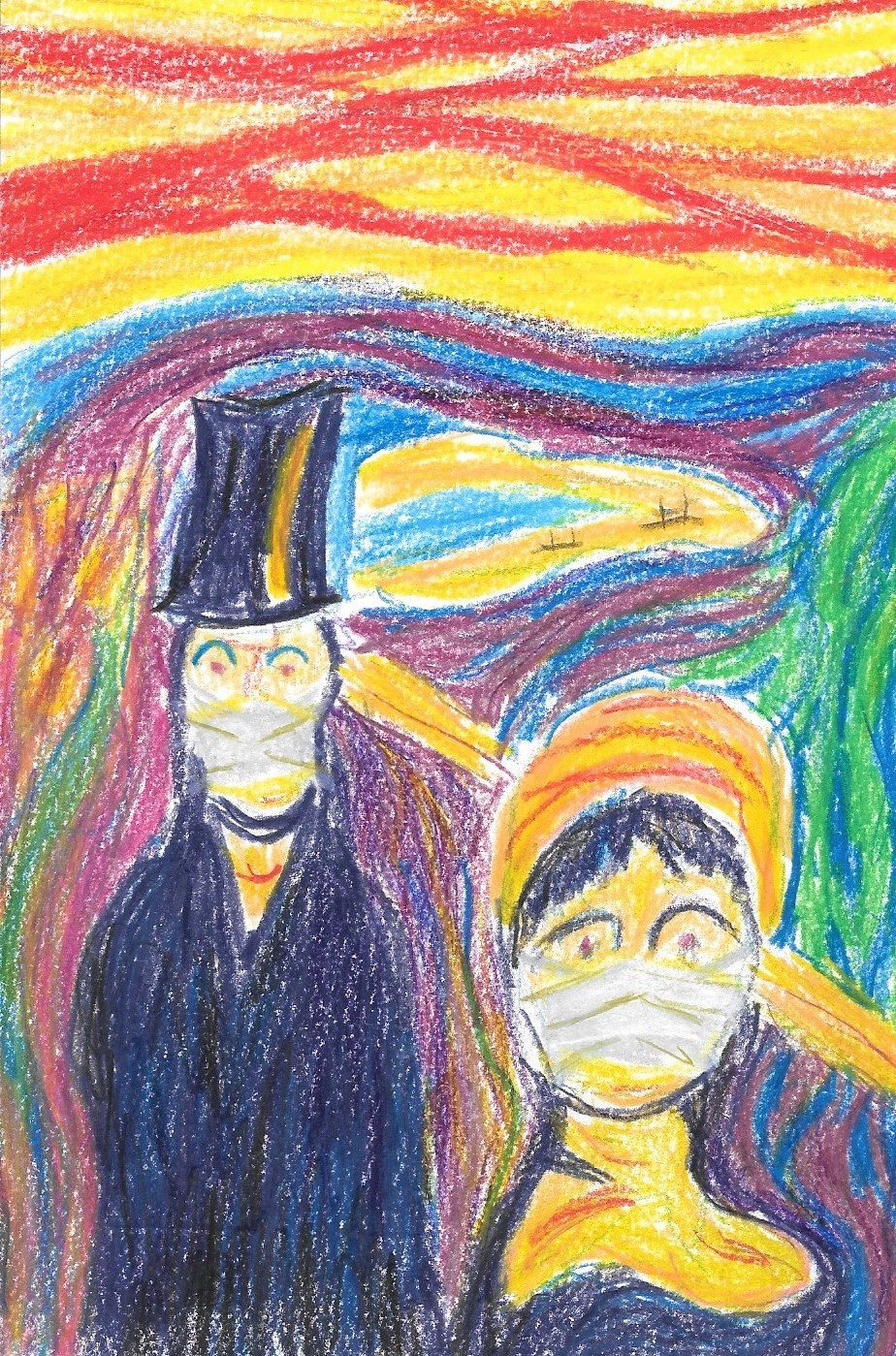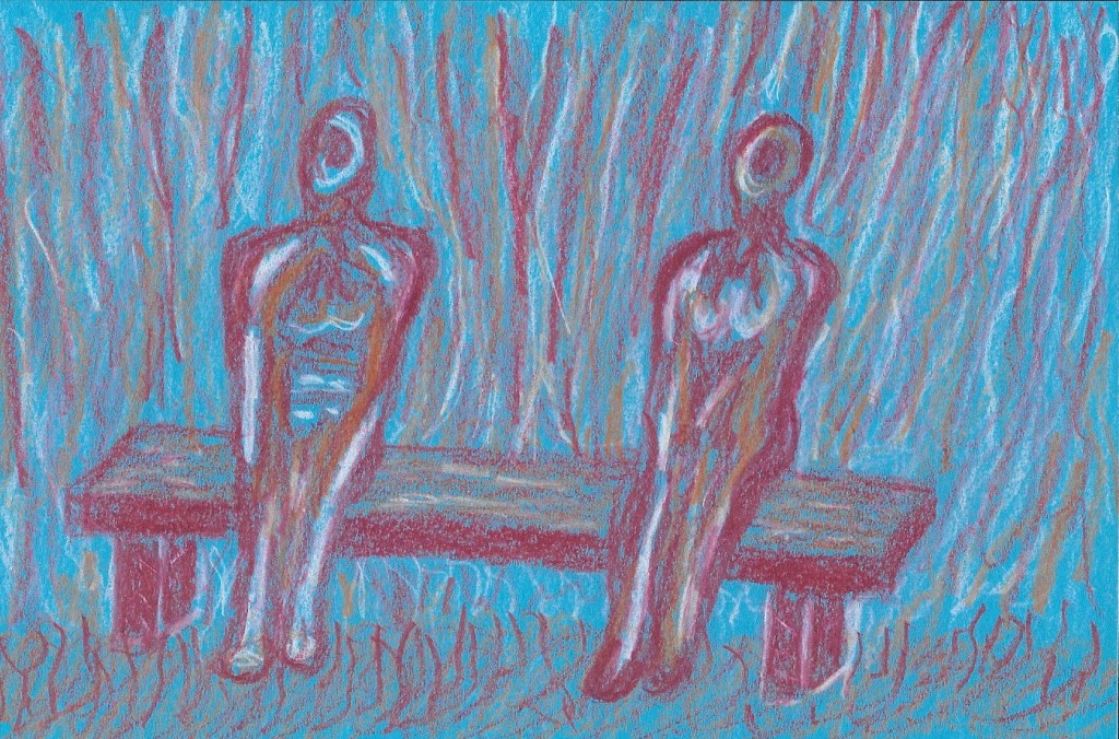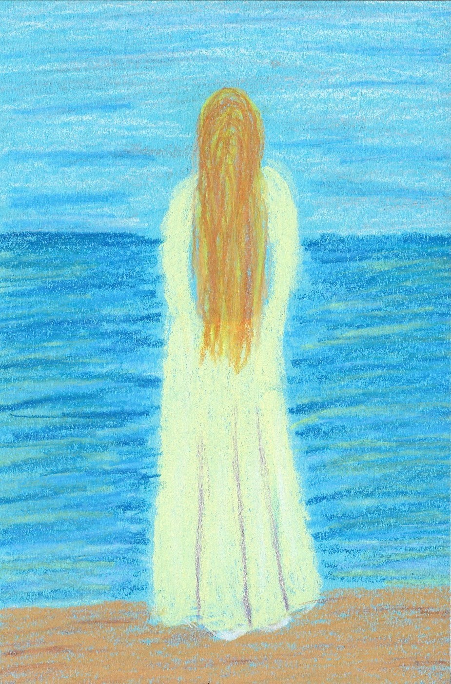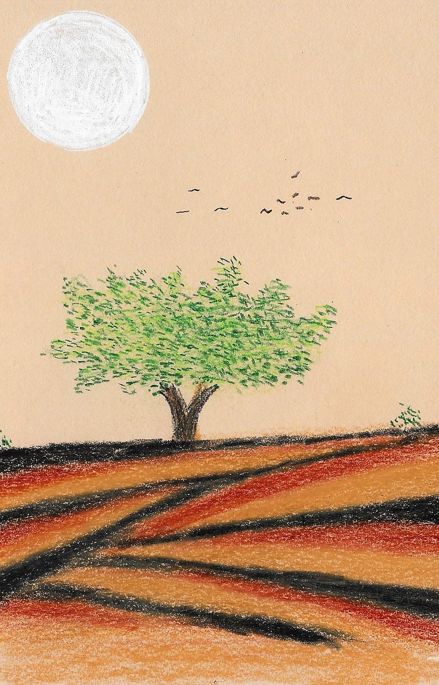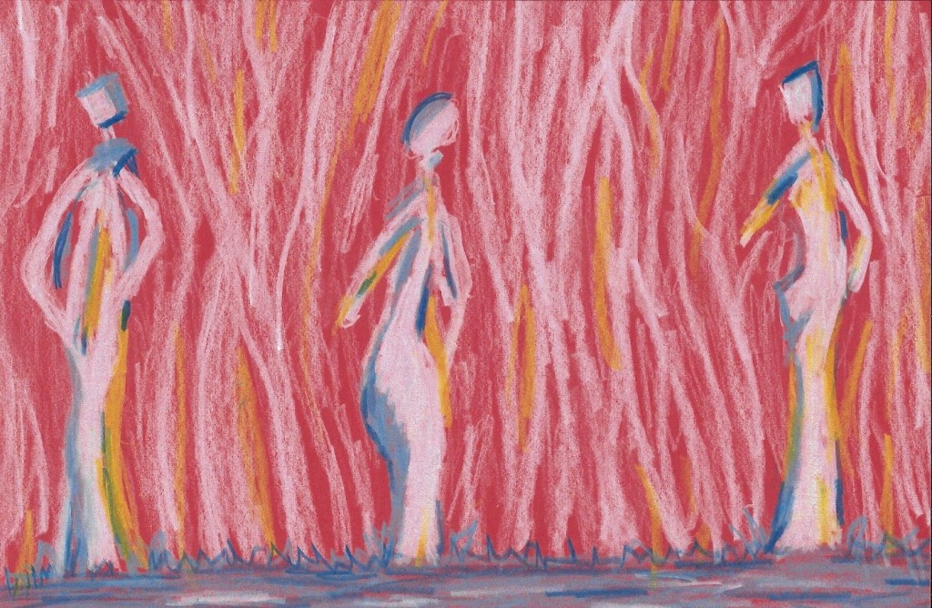 Hvid farveblyant på gråt papir. 50 x 70 cm. (tegning 40 x 50)