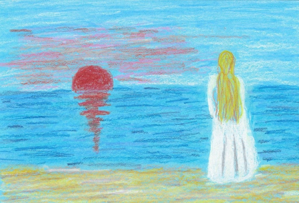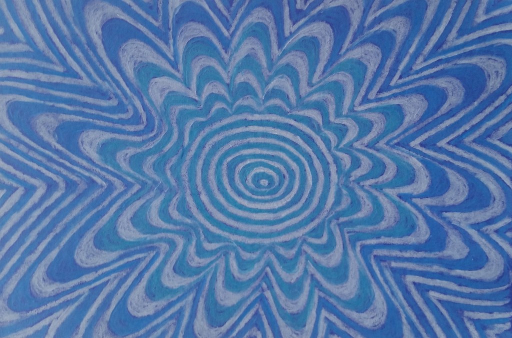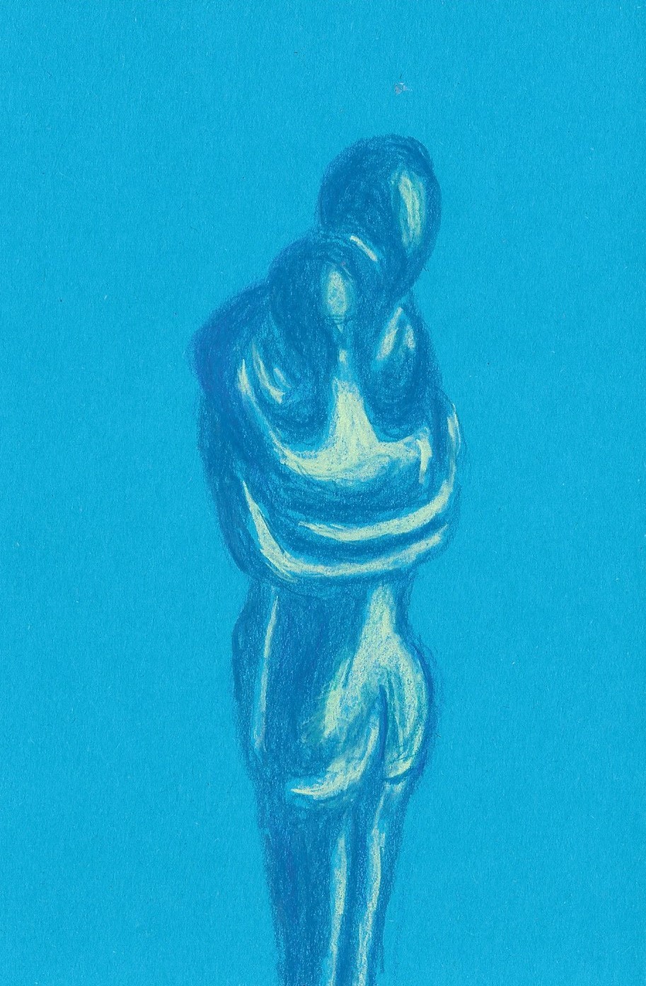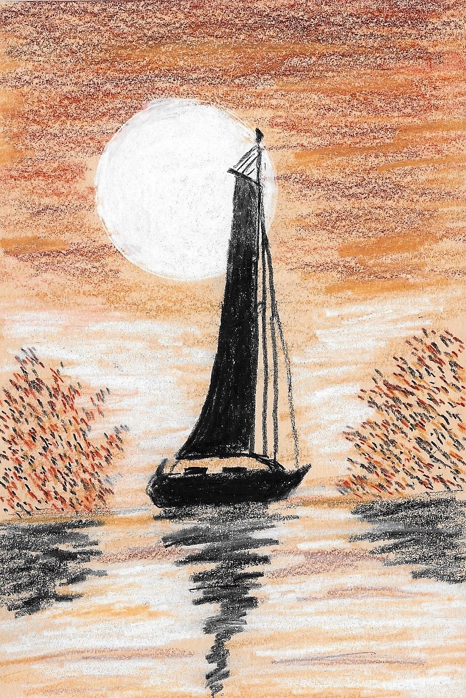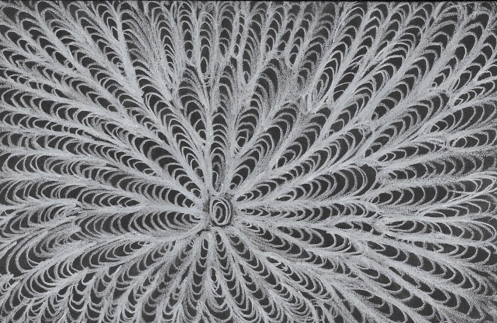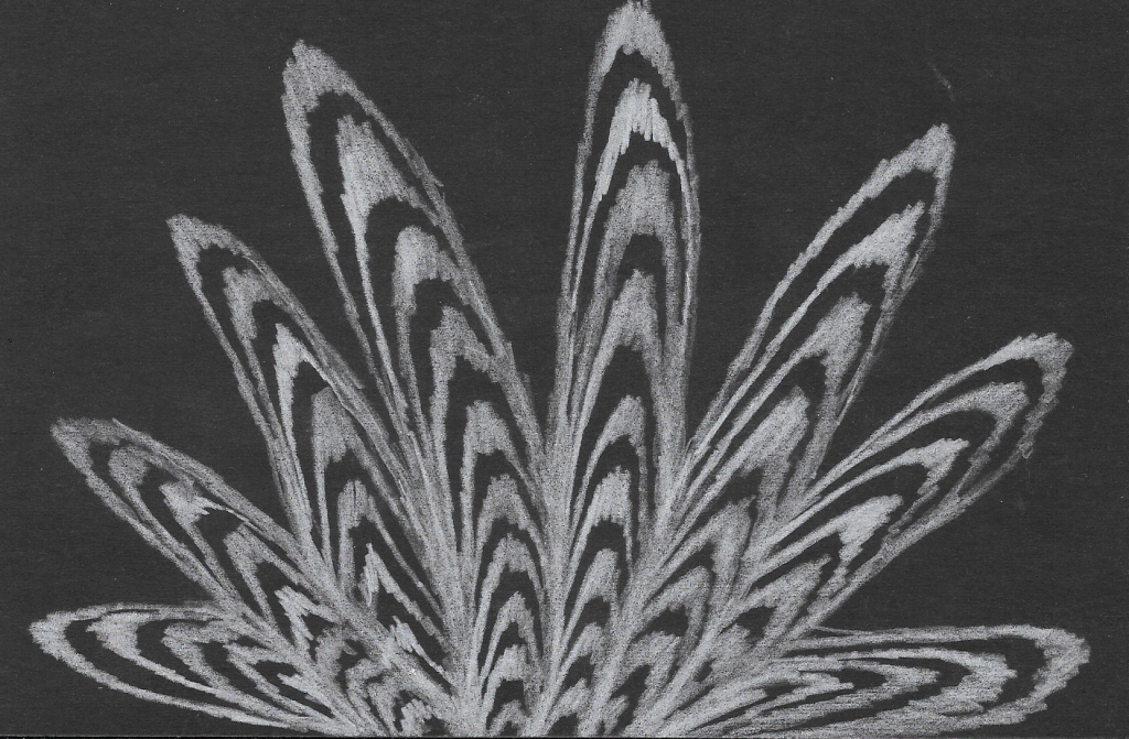 Hvid farveblyant på sort papir. 50 x 70 cm. (tegning 40 x 50)