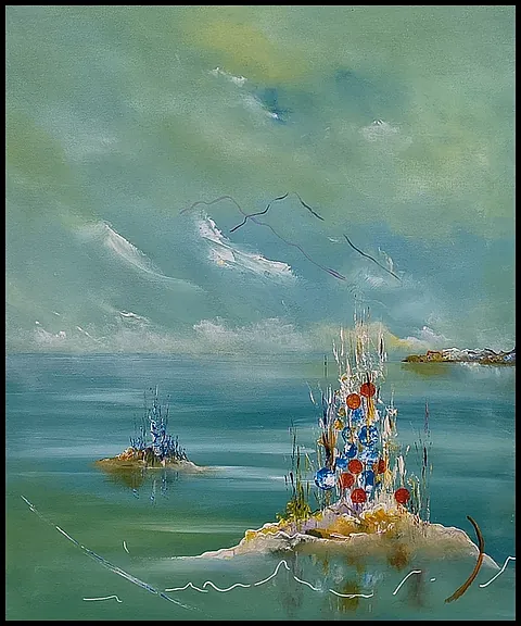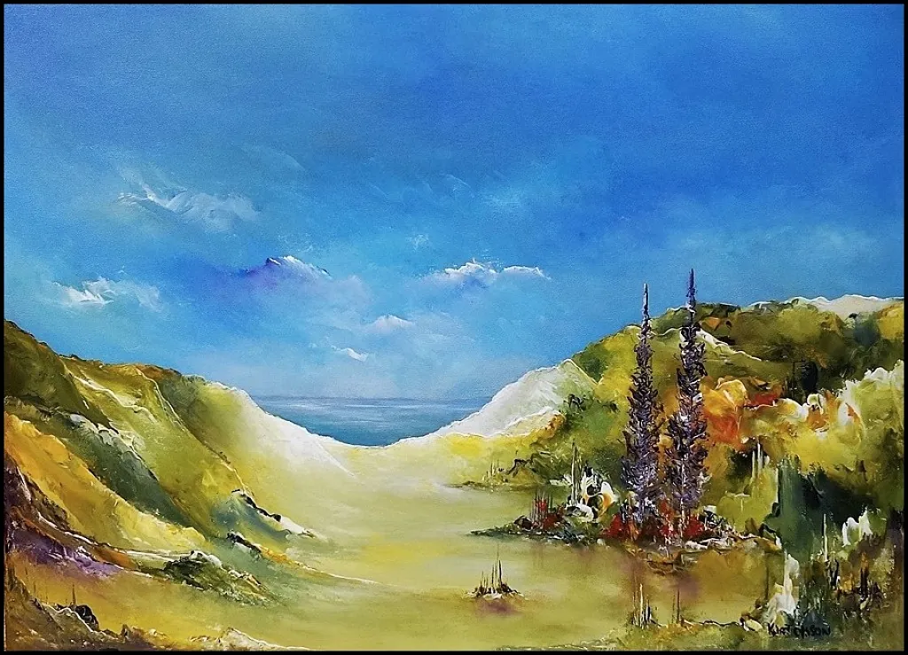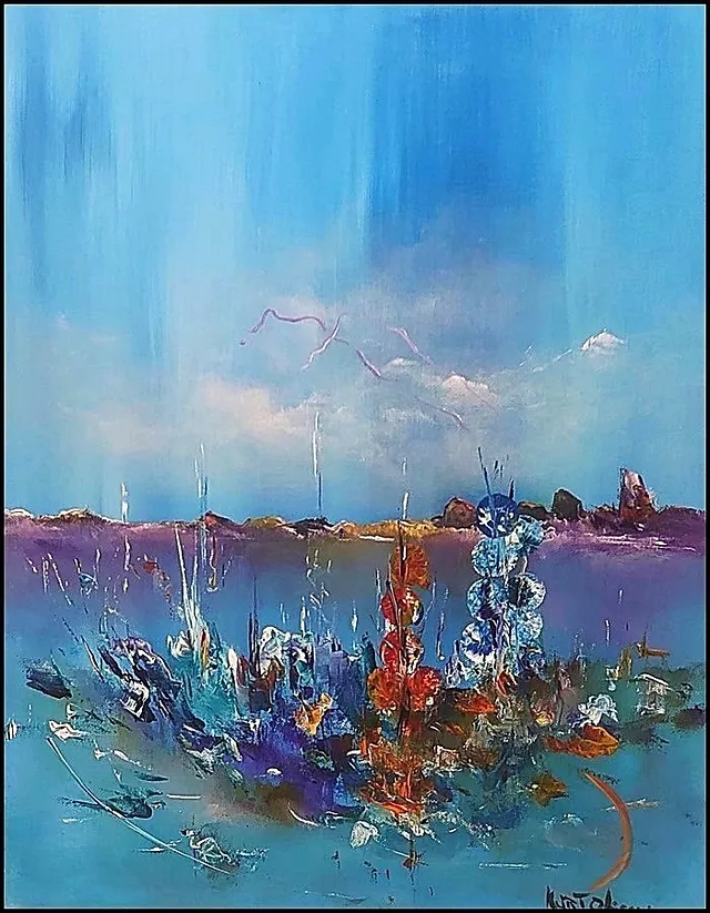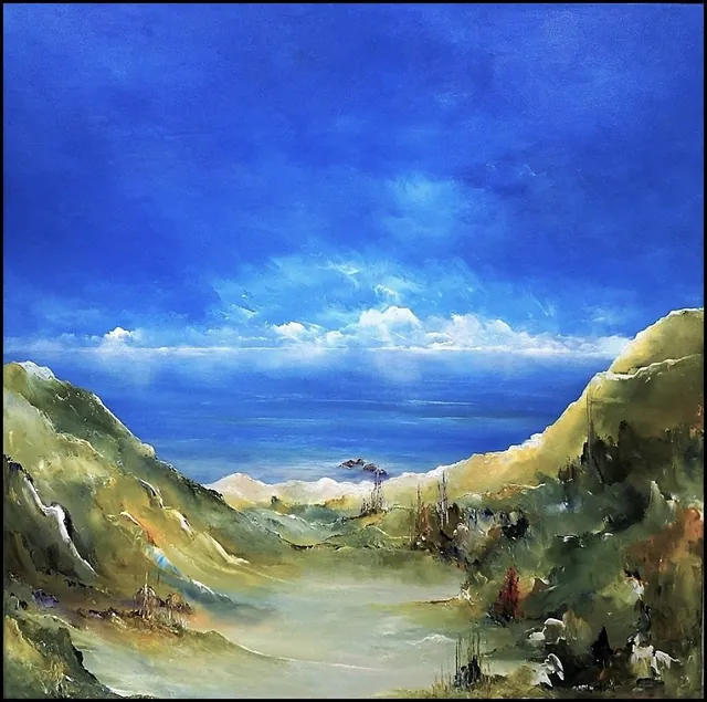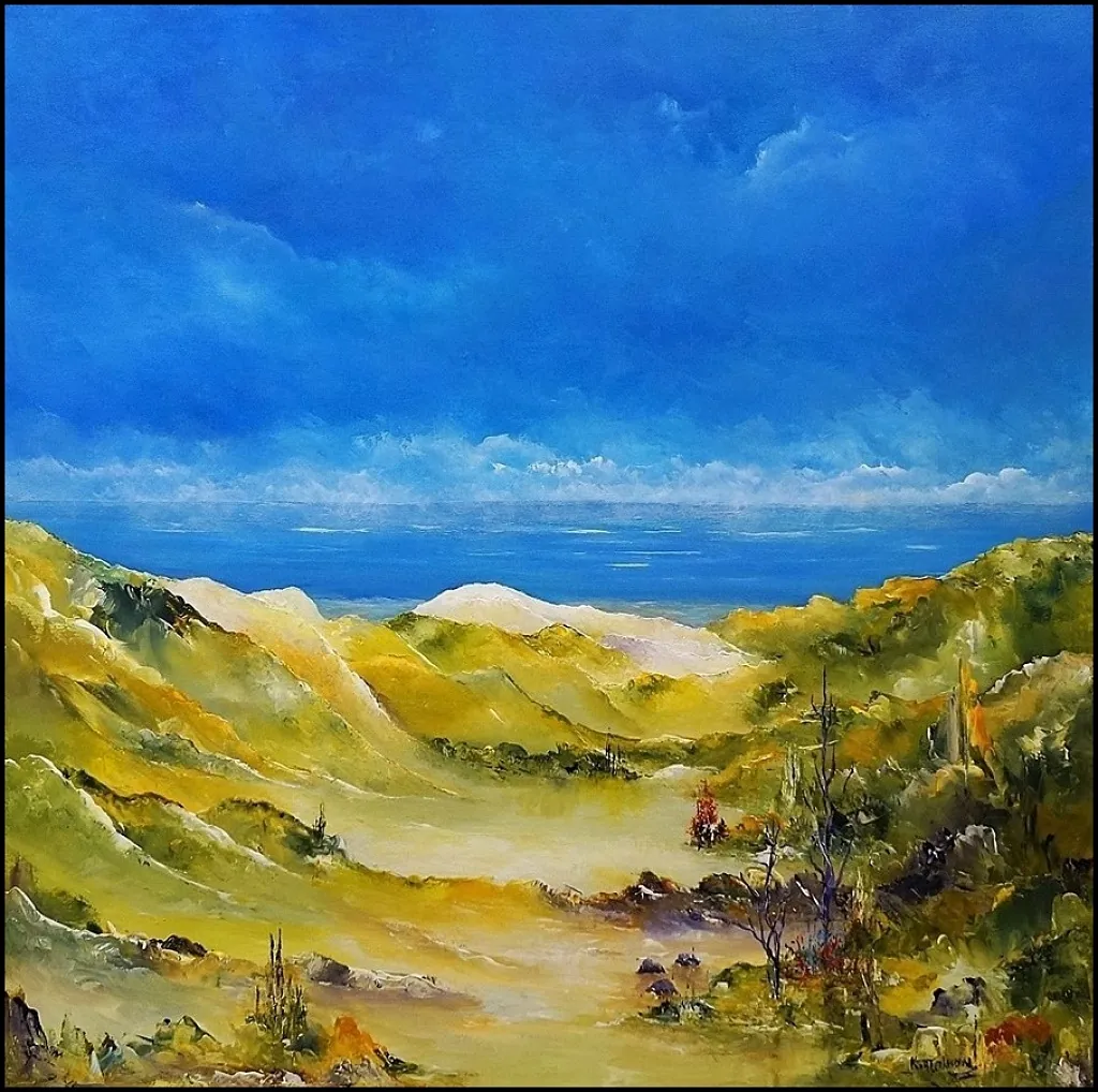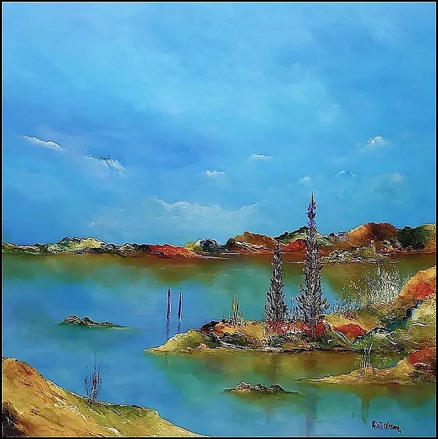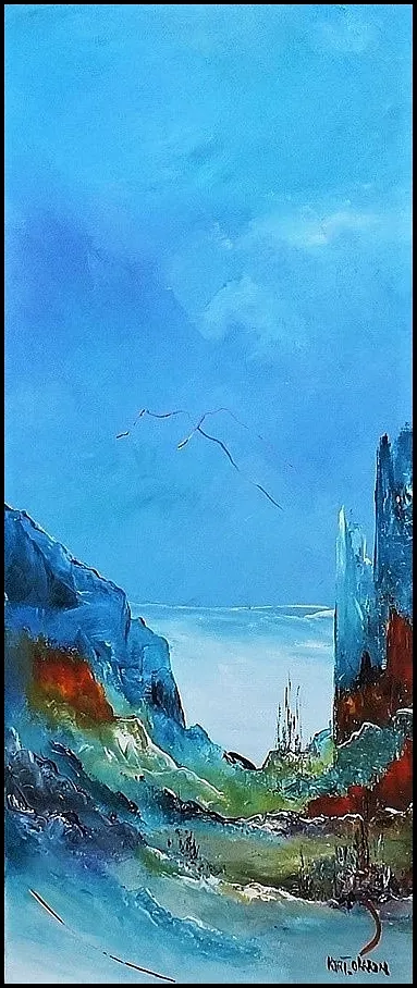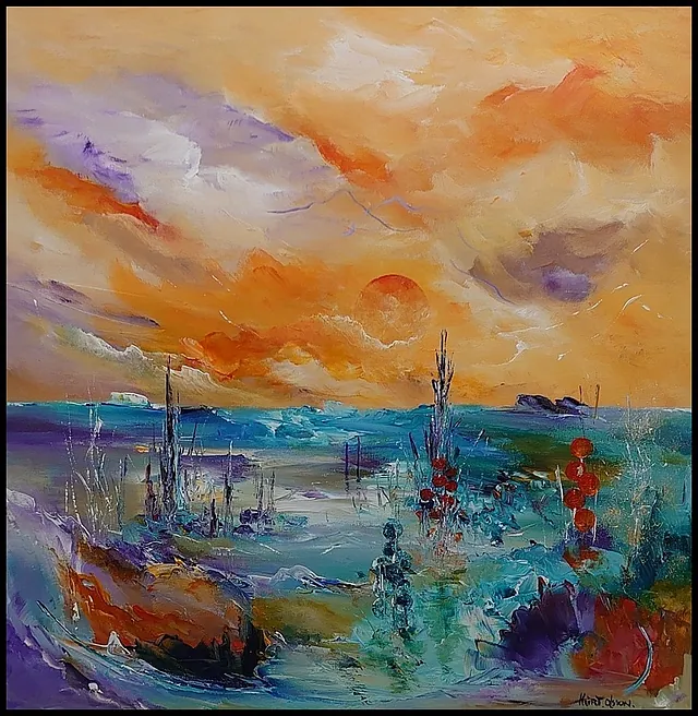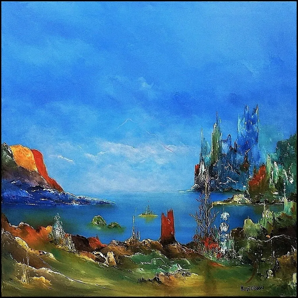 Alle mine malerier er malet i akryl på lærred og leveres indrammet.