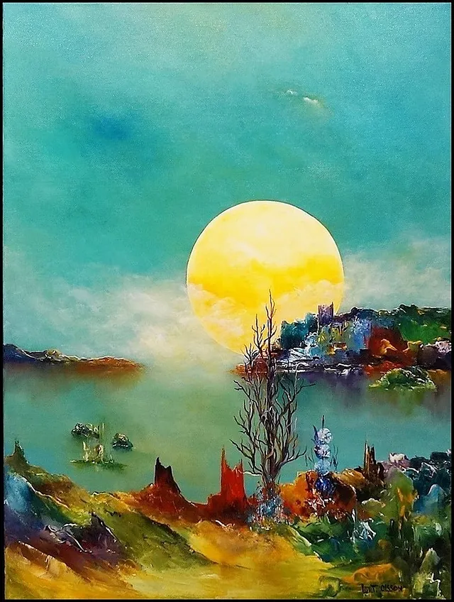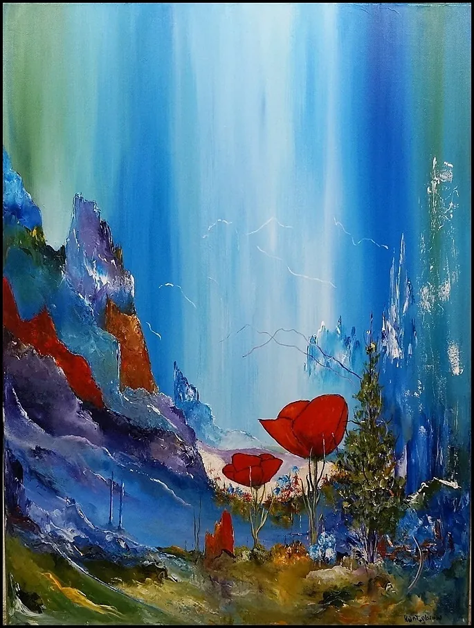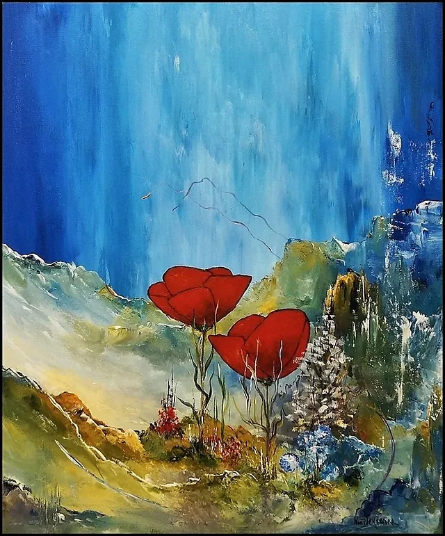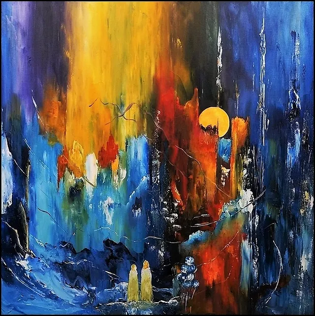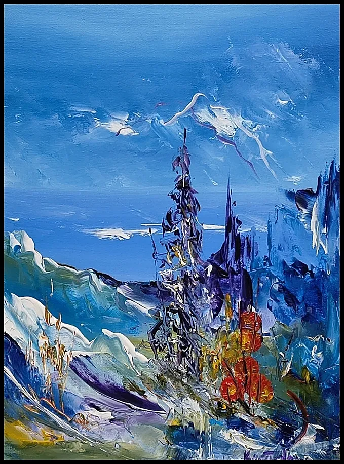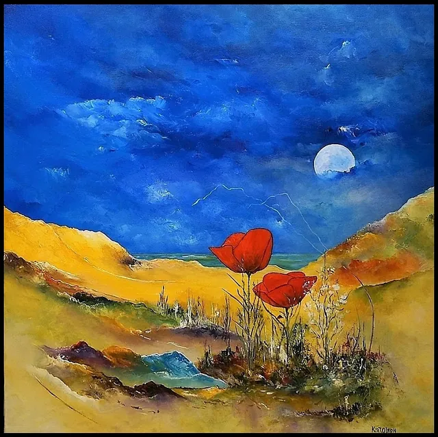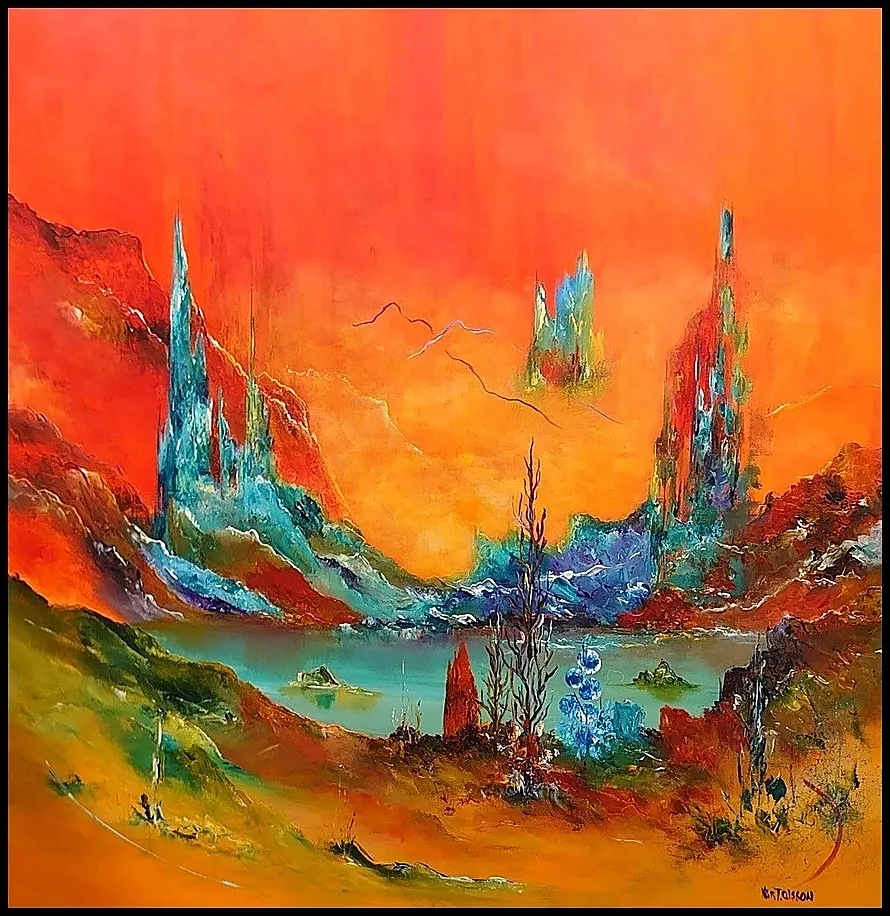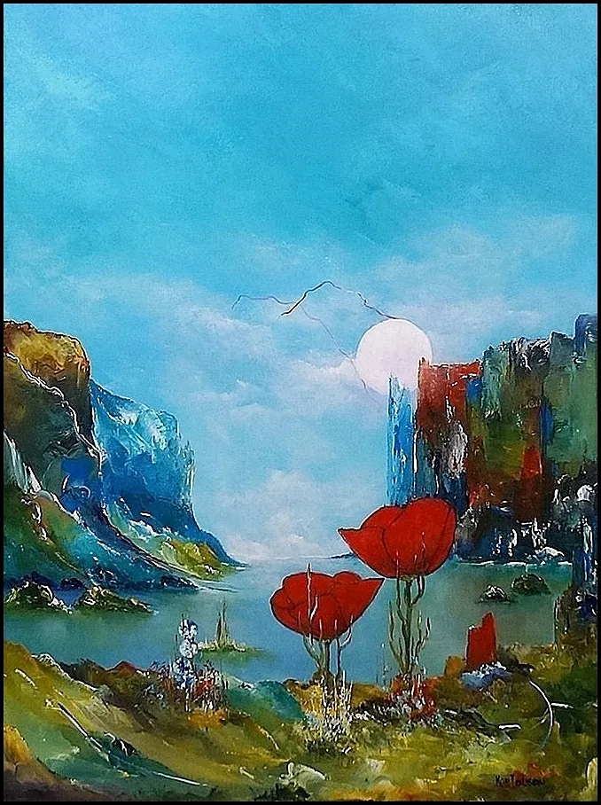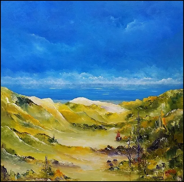 Alle mine malerier er malet i akryl på lærred og leveres indrammet.