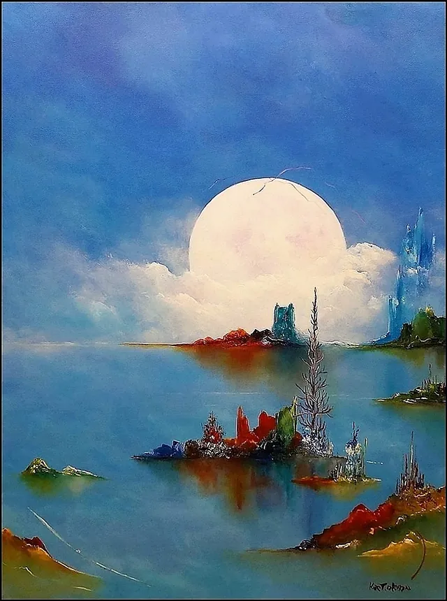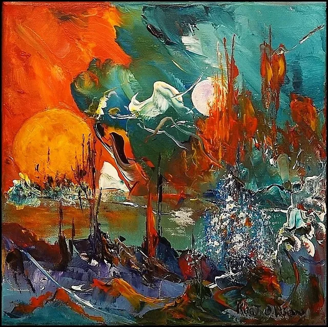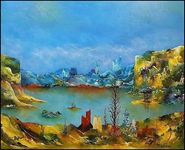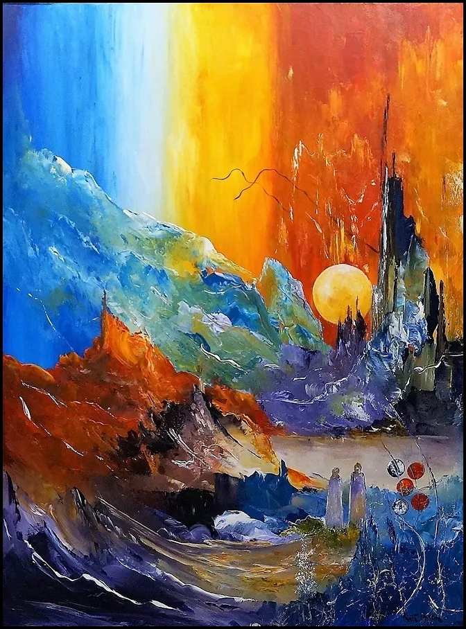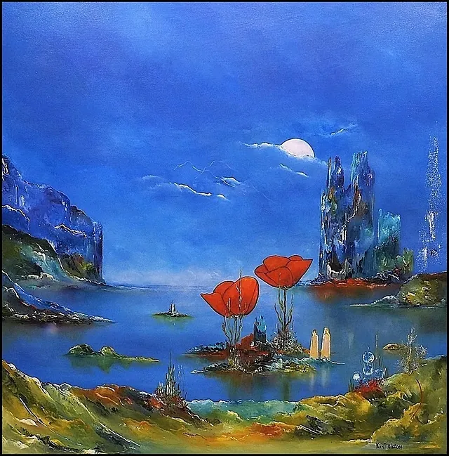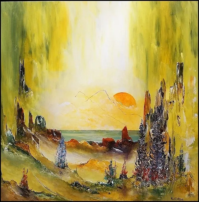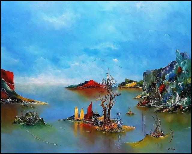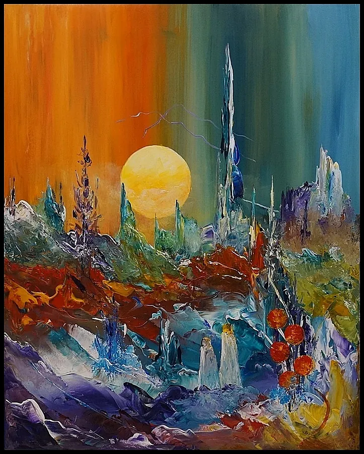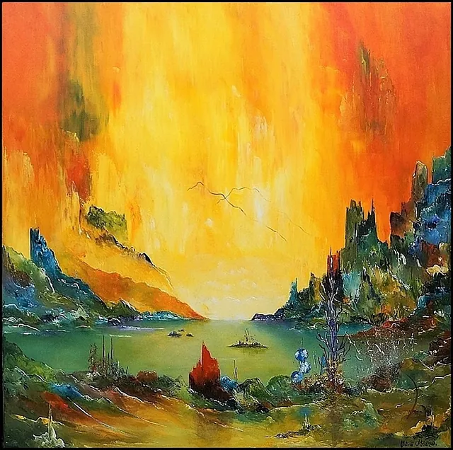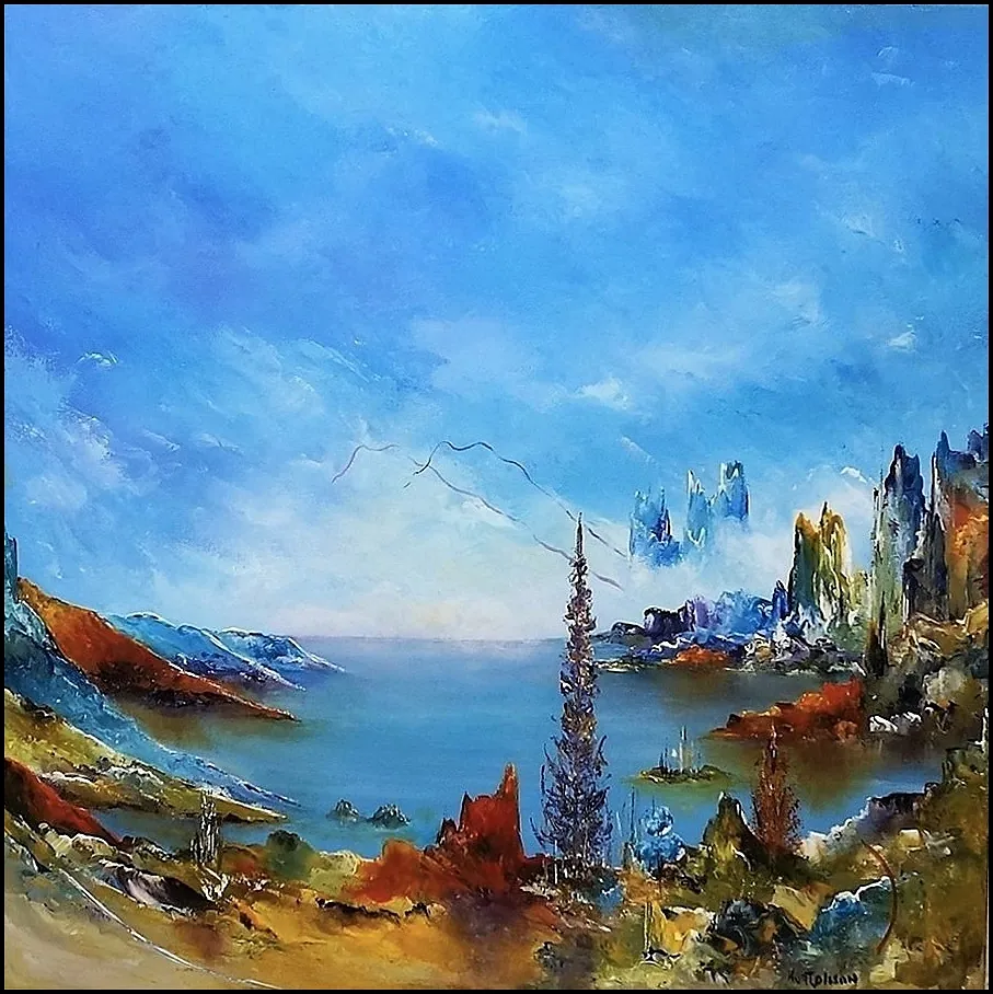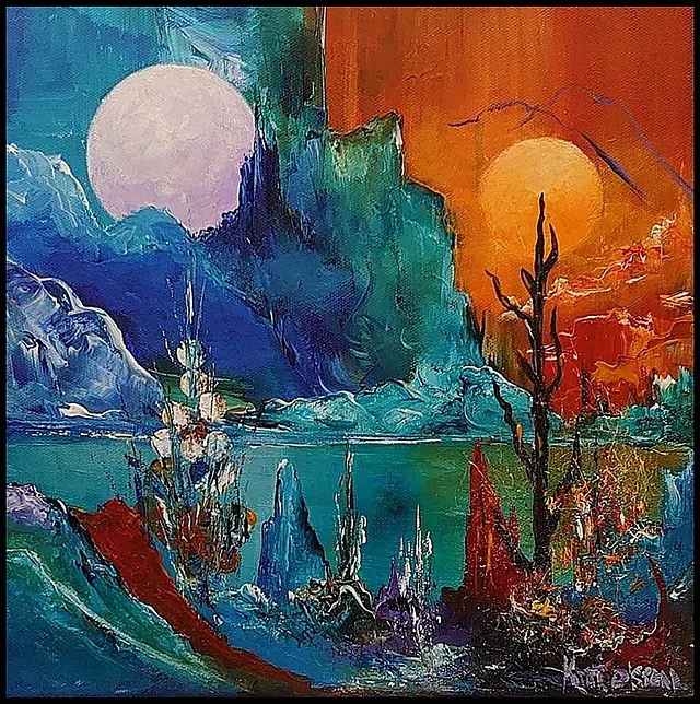 Alle mine malerier er malet i akryl på lærred og leveres indrammet.