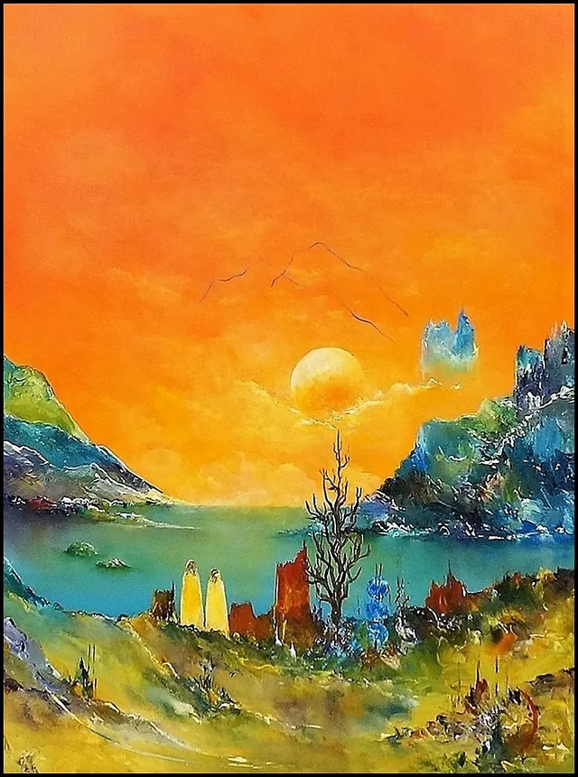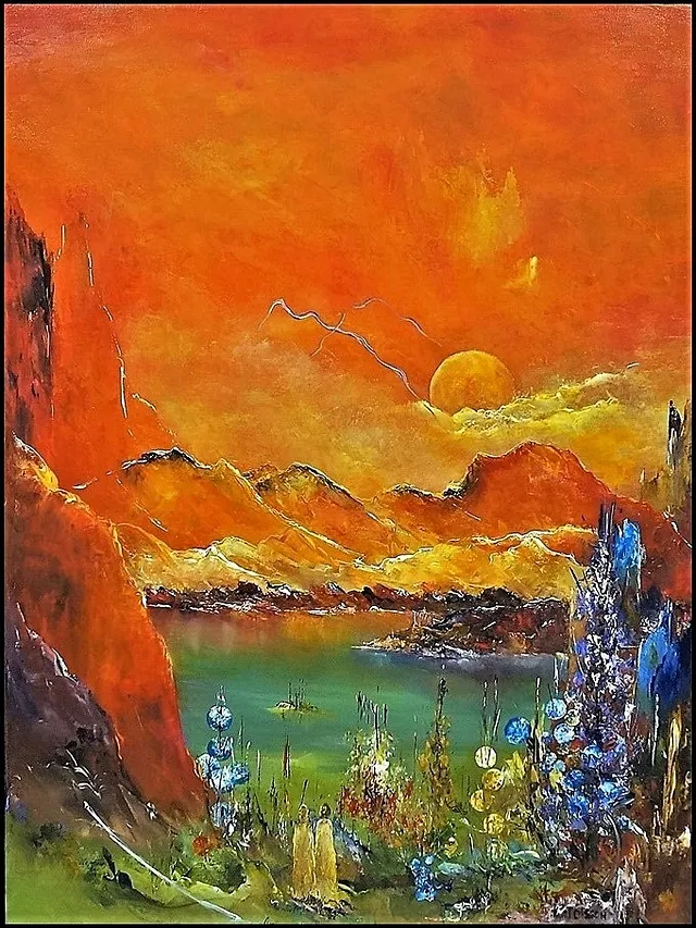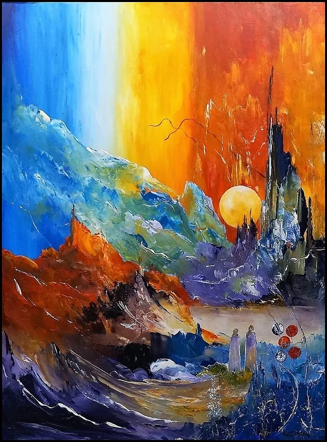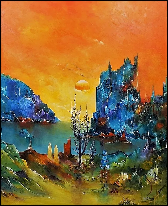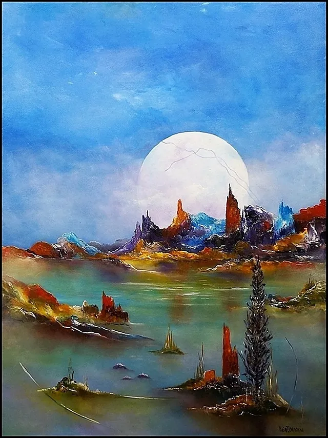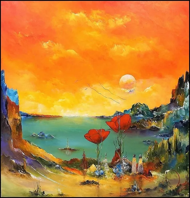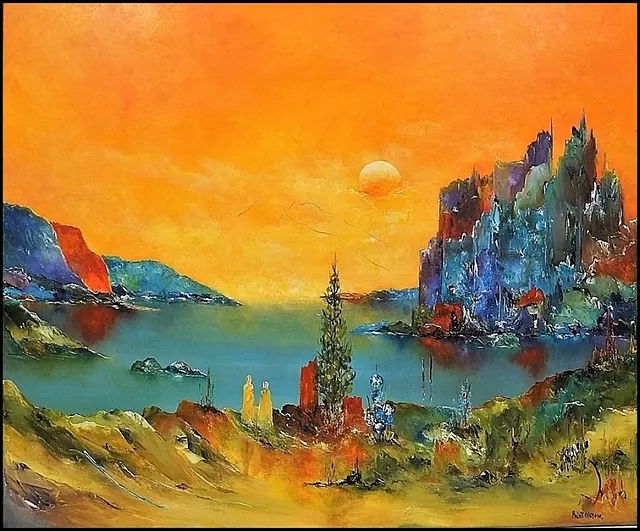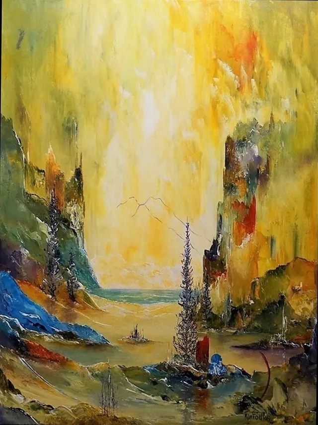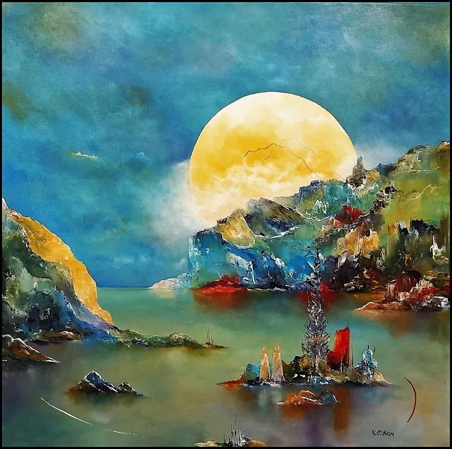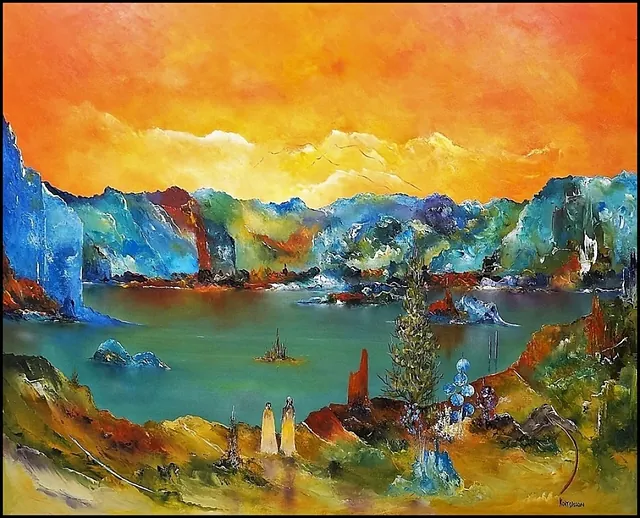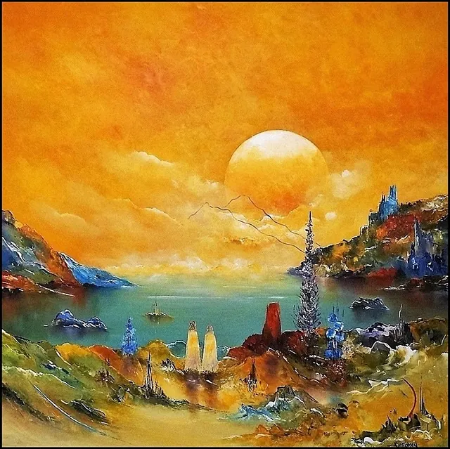 Alle mine malerier er malet i akryl på lærred og leveres indrammet.
